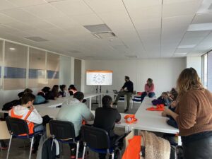 Après le premier volet du cheminement des colis, Elodie emmène le groupe dans l’espace « safety school » pour les mettre en situation. Les jeunes participent activement, plongeant ainsi dans les coulisses du respect des normes de sécurité. Après cet intermède instructif, le groupe se dirige vers la salle de pause déjeuner. Un moment de détente avec des baby-foots, des tables de ping-pong et des discussions animées avec les équipes d’Amazon. Après s’être ressourcés, les jeunes retournent dans l’entrepôt pour découvrir la deuxième partie du parcours d’un colis, axée sur le transport par les prestataires de livraison. La journée se conclut par une présentation des métiers au sein du site Amazon de Rivesaltes. Quentin détaille les rôles, des agents de trie aux directeurs des opérations. Les jeunes posent des questions sur les horaires, les salaires, la taille de l’entrepôt, etc.