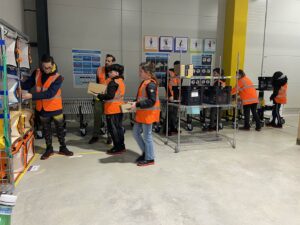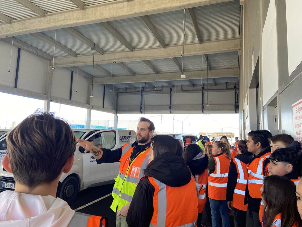 Un élément particulier attire l’attention des jeunes : la présence de musique dans l’entrepôt. Ils notent avec enthousiasme que cela crée une ambiance positive. Un détail qui, pour eux, est le signe d’une bonne ambiance de travail. Ils le partagent à leurs professeurs pour pouvoir appliquer cela au sein de leur atelier.