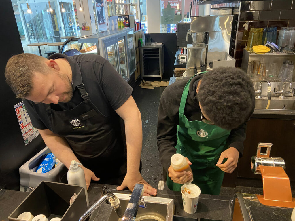 A Lyon, des jeunes en situation de handicap préparent et servent des boissons avec les salariés de Starbucks