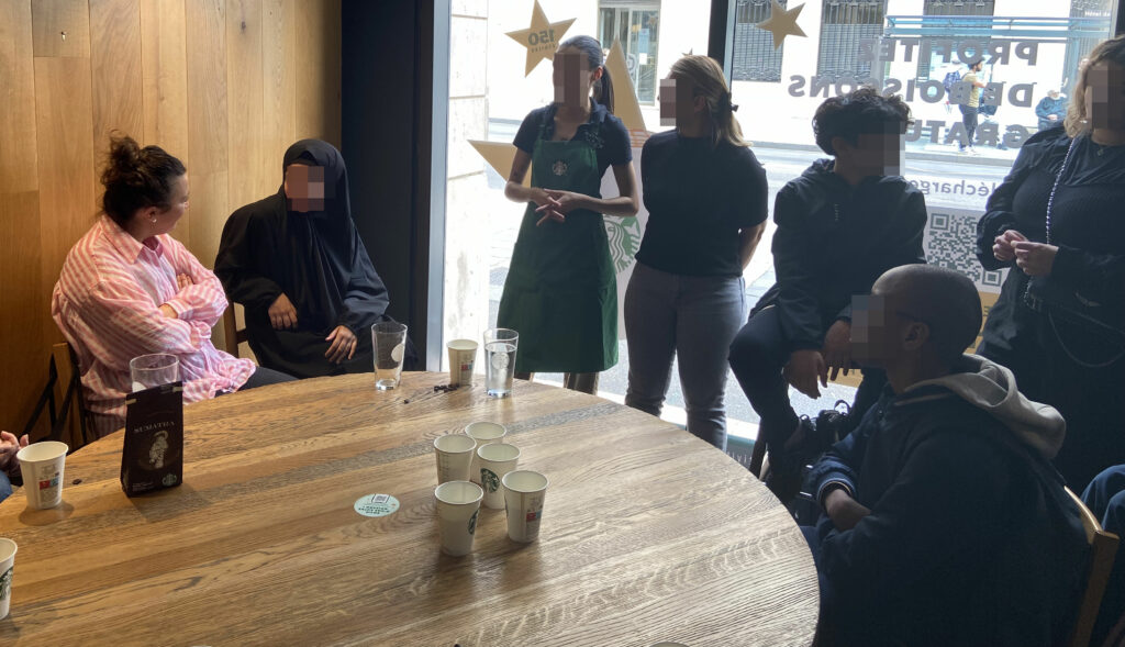 Les deux visites ont été préparées et accompagnées par notre chargée de missions Raphaelle Arnould. Tous les jeunes ayant déjà entendu parler de cette fameuse marque Starbucks -ou étant même consommateurs- sont venus découvrir les coulisses et métiers qui s’y cachent.