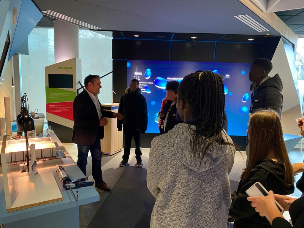 Une collaboratrice d’Arkema a partagé avec eux la politique RSE de l’entreprise et son partenariat avec l’équipe féminine de football française, soulignant la chance qu’ils avaient de découvrir ces coulisses.