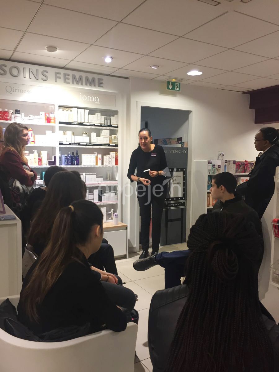 Un magasin-institut de l’enseigne Marionnaud à Paris a accueilli ce jeudi 04 octobre 2018 un groupe de 7 élèves intéressés par les métiers de la vente...
