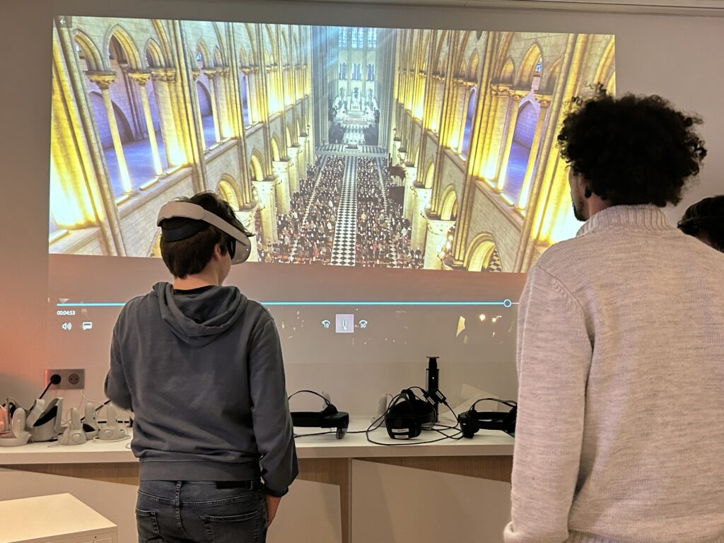 Nous sommes ensuite dirigés vers une salle entièrement dédiée à la réalité virtuelle. Les jeunes peuvent alors vivre une expérience inoubliable : découvrir une « réalité augmentée » en enfilant un casque spécial.