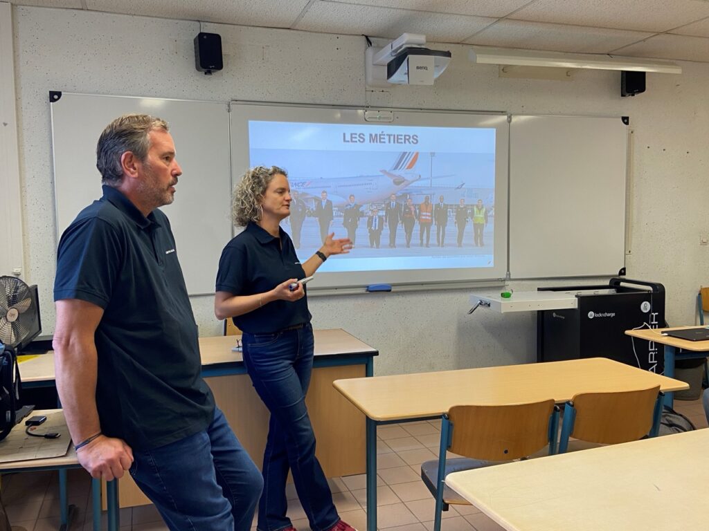 Durant deux heures, les intervenants ont proposé un programme en deux temps. Tout d’abord, ils ont présenté le fonctionnement d’un aéroport et le monde du transport aérien, afin de donner des repères aux élèves qui n’avaient jamais eu l’occasion de voyager en avion. Ils ont ensuite détaillé les différents métiers d’Air France, offrant un panorama concret de ce secteur riche en opportunités.
