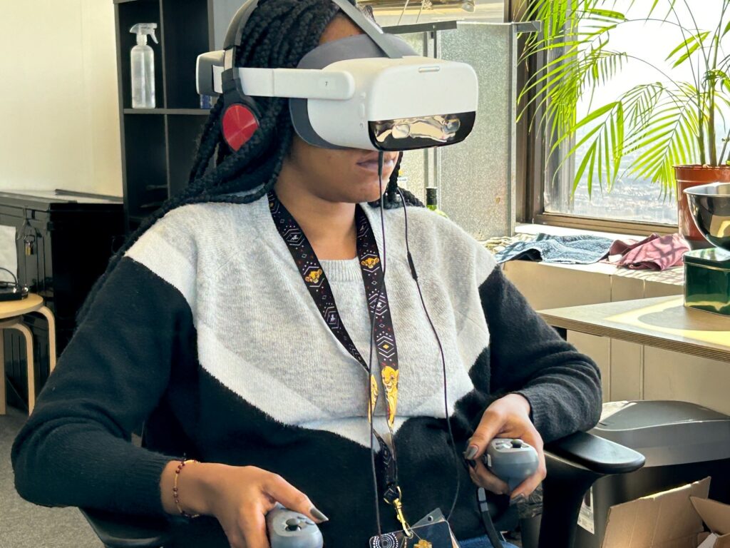 de l’avis général, la sensation est assez étonnante. Le casque virtuel plonge chacun et chacune dans un monde professionnel reconstitué. Vous prenez la place de la personne en situation de handicap. Vous en ressentez les effets négatifs. Au fur et à mesure du scénario, qui dure une vingtaine de minutes, vous bénéficiez d’explications précises grâce à l’intervention de personnes spécialisées. Une belle mise en situation, qui diffère des moyens habituels pour se former à ces sujets.