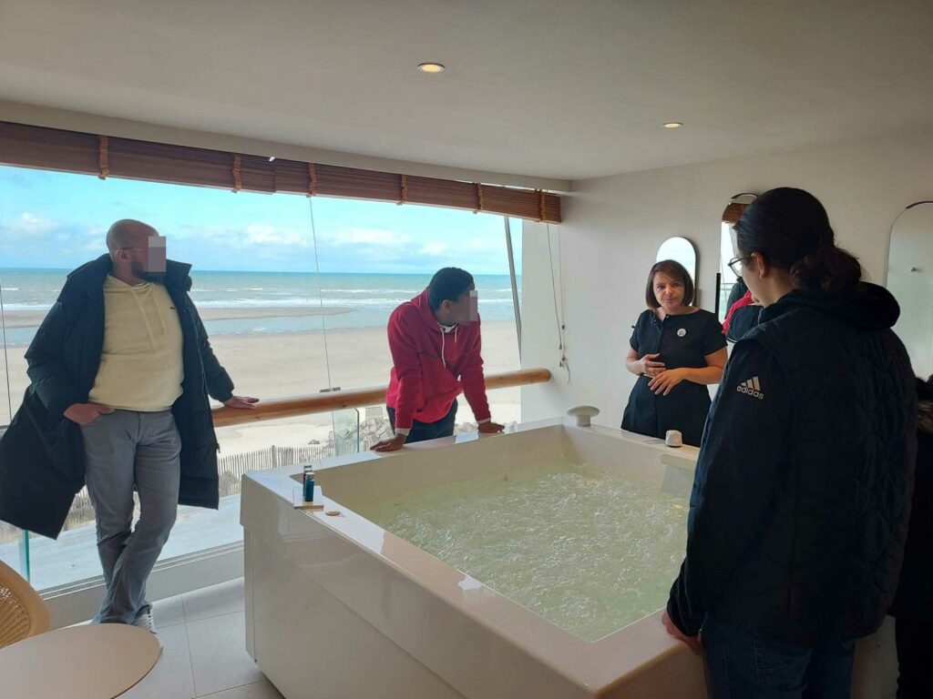 Chaque visite était accompagnée par des professionnels : le chef de cuisine, le responsable de la restauration, le chef de réception, une réceptionniste, l’assistante gouvernante, une femme de chambre, et le personnel de l’institut de thalasso.