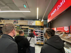 L’itinéraire de chaque visite s’est déroulé de manière similaire, offrant tout d’abord aux participants une exploration des divers postes présents au sein des supermarchés. De la mise en rayon à la caisse, en passant par la boulangerie et la boucherie, les jeunes ont eu l’opportunité d’appréhender la richesse et la diversité des métiers de la grande distribution.