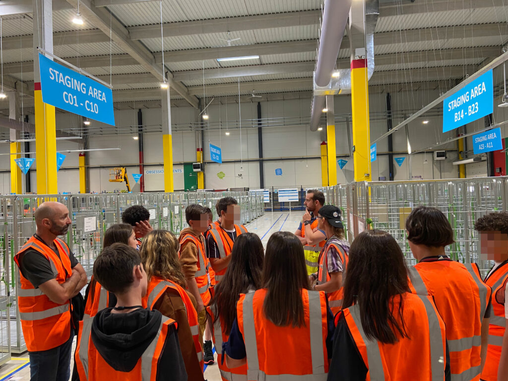 Puis ces élèves, scolarisés en 3ème SEGPA du collège Joffre à Rivesaltes, passent à la visite du Floor, le nom que l’on donne à un entrepôt chez Amazon… Les jeunes visiteurs sont accompagnés par Violette, qui va leur expliquer tout le cheminement d’un colis au sein de leur site.