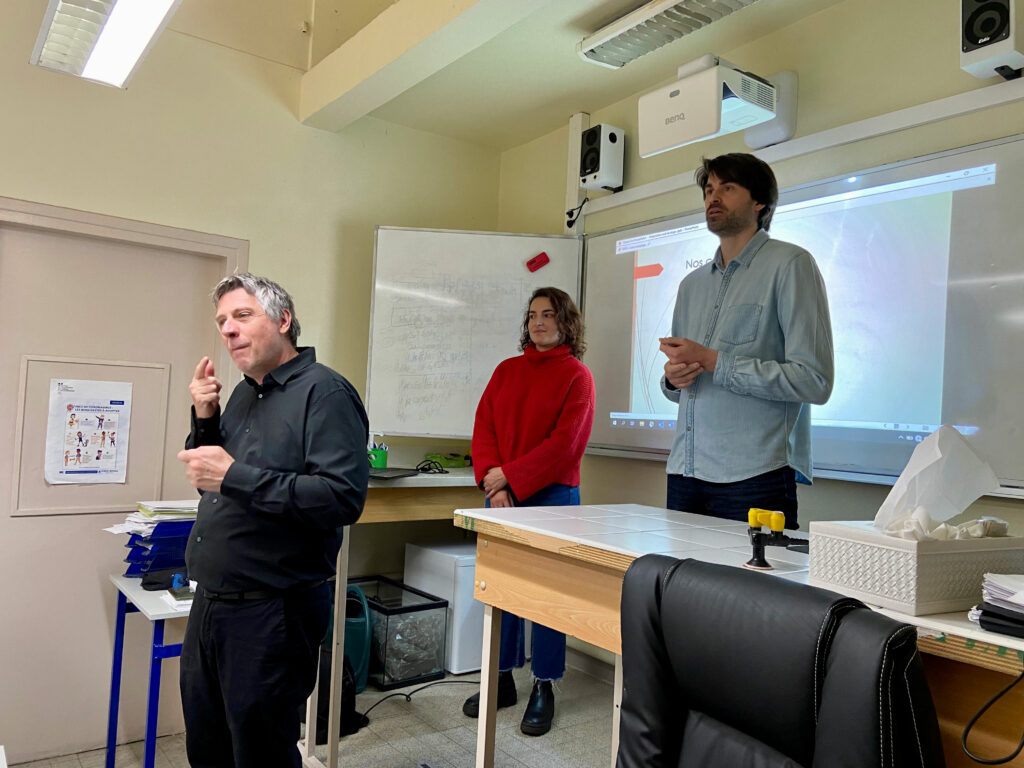 Les participants, accompagnés d’un interprète LSF, sont huit jeunes collégiens, scolarisés au Collège Morvan, dans le 9ème arrondissement de Paris. L’ambiance de travail est studieuse. Un peu effacés au départ, il se sont vites révélés au moment des questions réponses.