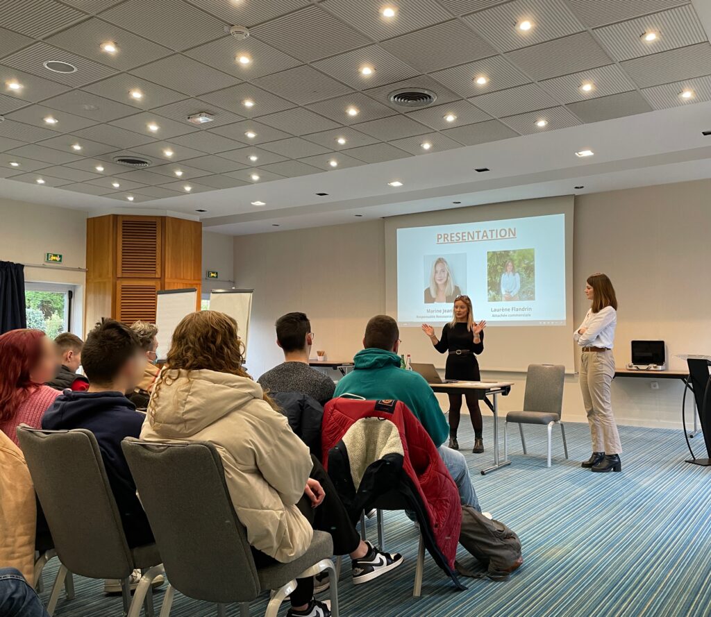 La visite a débuté par une session en salle où chaque élève a pu se présenter et partager ses aspirations professionnelles. Ce moment d’échange a été suivi par une présentation dynamique de l’établissement, animée par Marine Jeannin, responsable des Ressources Humaines, et Laurène Flandrin, attachée commerciale. Les jeunes, curieux et enthousiastes, ont saisi l’occasion pour poser des questions telles que :