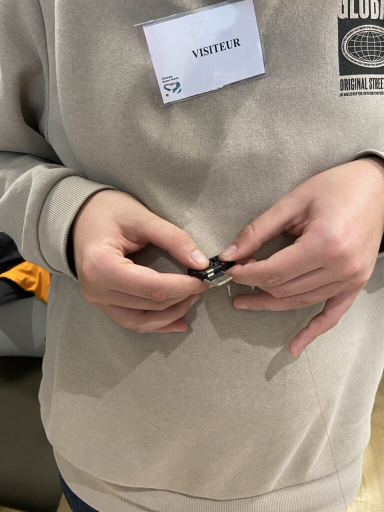 Le déjeuner à la cantine d’entreprise a été l’occasion de discuter avec les collaborateurs d’Orange dans une ambiance conviviale, un moment riche en partage fort apprécié par les jeunes. L’après-midi a été consacré à des ateliers ludiques, dont un sur la soudure de fibre optique, où les jeunes ont eu l’opportunité de manipuler directement le matériel et de découvrir les techniques utilisées dans ce domaine. Un autre atelier sur les techniques de vente a permis aux jeunes de participer à des jeux interactifs, rendant l’apprentissage à la fois drôle et concret.