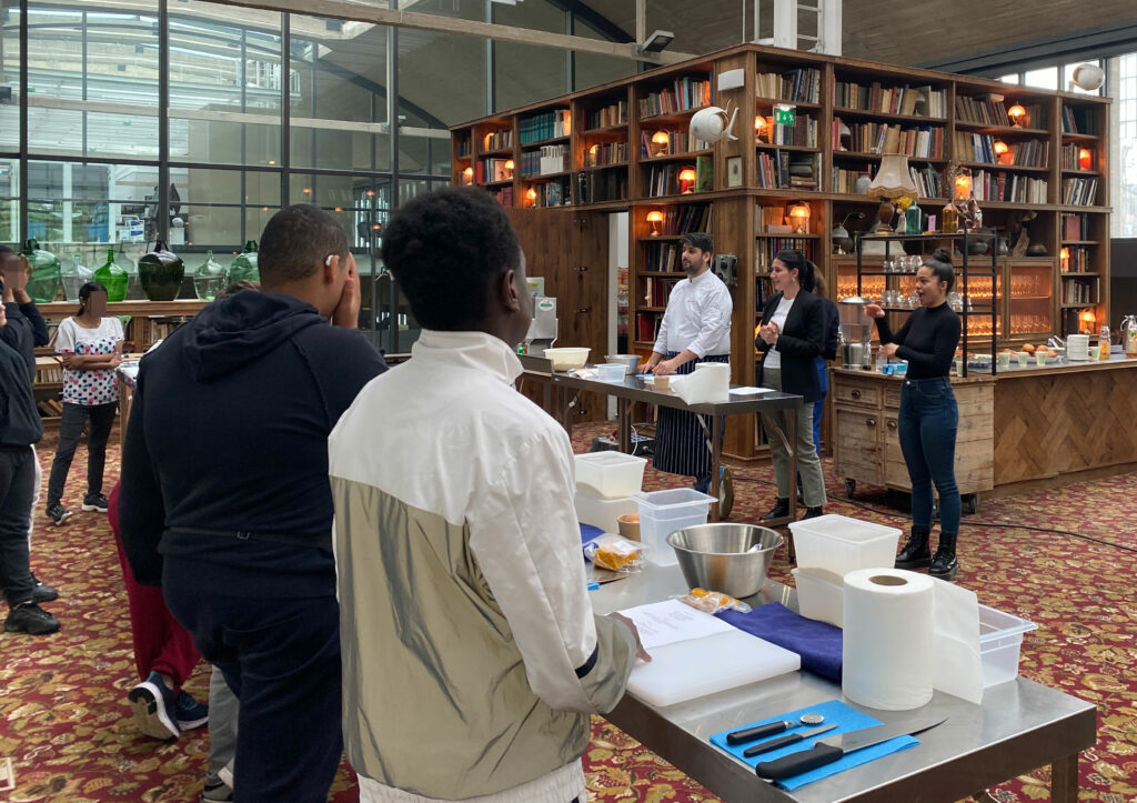 Dix jeunes de 3ème, scolarisés à l’Institut National des Jeunes Sourds à Paris, ont participé, le 11 mai 2023, à un atelier de découverte du métier de cuisinier, avec notre membre actif Big Mamma