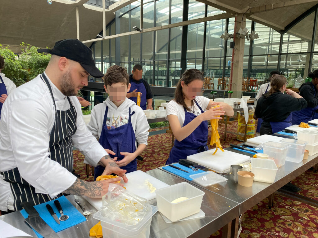 C’est ainsi qu’un atelier pâtes fraiches s’est organisé avec Big Mamma et trois chefs italiens « Michelle, Pepe et Virginia» afin de faire découvrir ce métier de cuisinier aux jeunes.