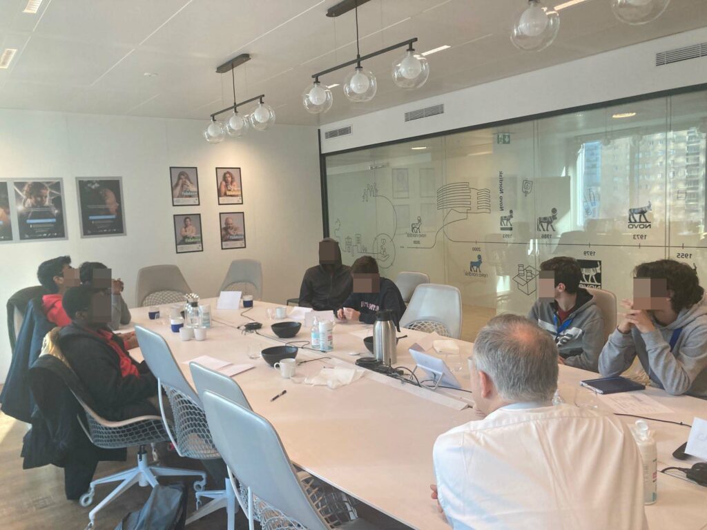 Durant l’après-midi, les stagiaires étaient placés en binôme avec un professionnel. Différents thèmes ont été évoqués, tels que l’obésité et ses conséquences sur la santé, le diabète de type 2 et les bonnes pratiques pour l’éviter… A la fin de la journée, ils ont rencontré Etienne Tichit, directeur général Novo Nordisk France.