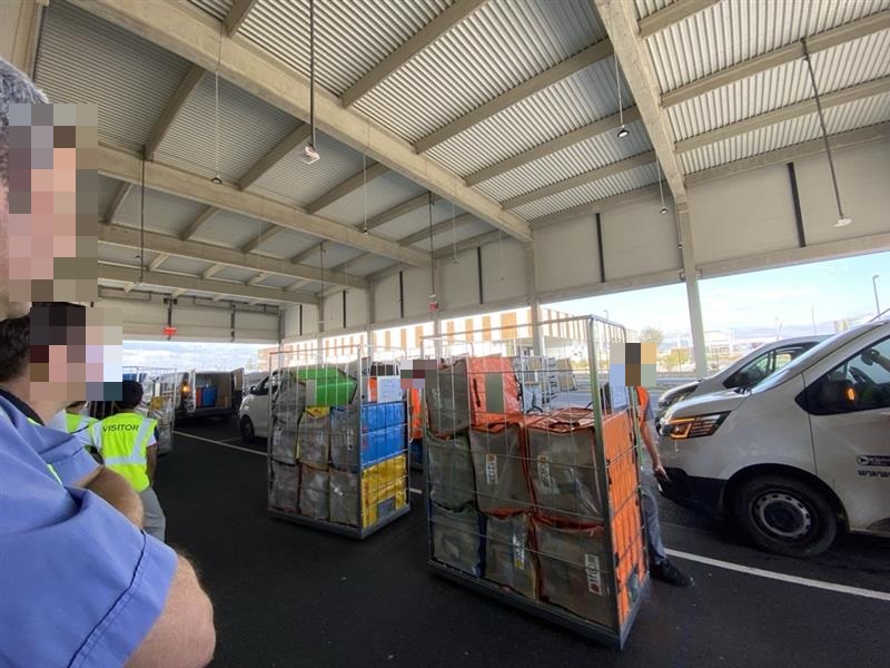 Dylan a ensuite conduit les jeunes pour leur montrer comment les nombreux colis sont rangés dans des sacs. Les jeunes étaient curieux de connaître le nombre de colis traités quotidiennement. Dylan leur a répondu qu’environ 15 000 colis partaient chaque jour de cet entrepôt.
