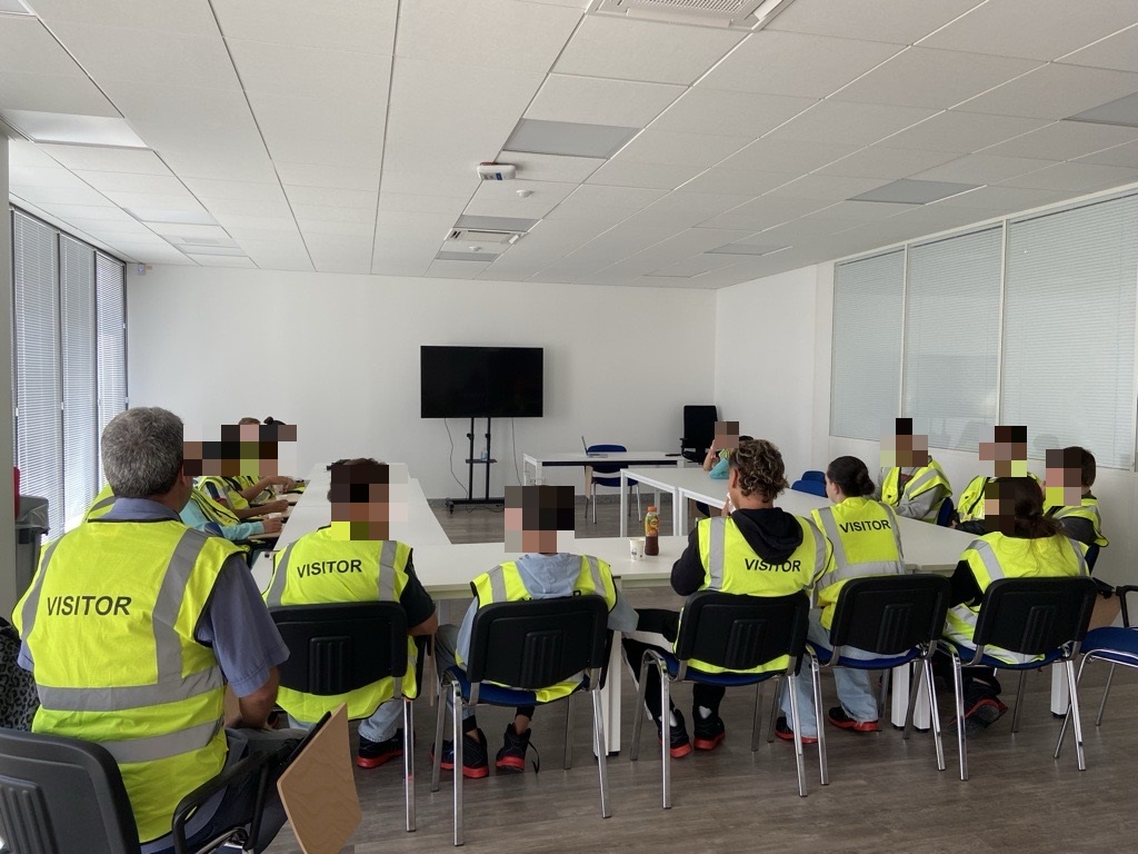 La visite a débuté par l’équipement du groupe avec des équipements de protection individuelle (EPI), notamment des chaussures de sécurité et des gilets. Cette étape a suscité l’intérêt des jeunes, qui se sont demandé si tous les employés devaient porter ces équipements.