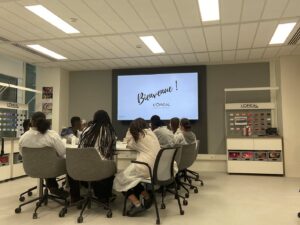 Après cette immersion enrichissante, le groupe a été convié à une séance de présentation de l’entreprise dans une salle de réunion. L’histoire de L’Oréal remonte avant la Première Guerre mondiale, lorsque le chimiste Eugène Schueller a entrepris de créer des produits de coloration capillaire plus sûrs, en réponse aux pratiques nocives de l’époque.