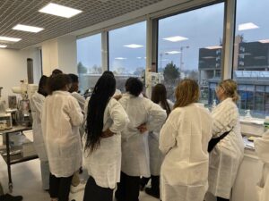 Dès leur arrivée, les élèves ont été accueillis et équipés de badges, de blouses et de chaussures de sécurité, indispensables pour accéder aux laboratoires. Guidés par Sabine et son équipe, ils ont plongé dans l’univers de la recherche scientifique en découvrant les secrets de fabrication d’un sérum. La présentation détaillée a révélé les composants essentiels, tels que les parties grasse et aqueuse, ainsi que les agents tensioactifs et gélifiants. Une expérience pratique a ensuite permis aux jeunes de tester divers produits aux textures variées, ouvrant ainsi un monde de possibilités dans le domaine de la recherche.