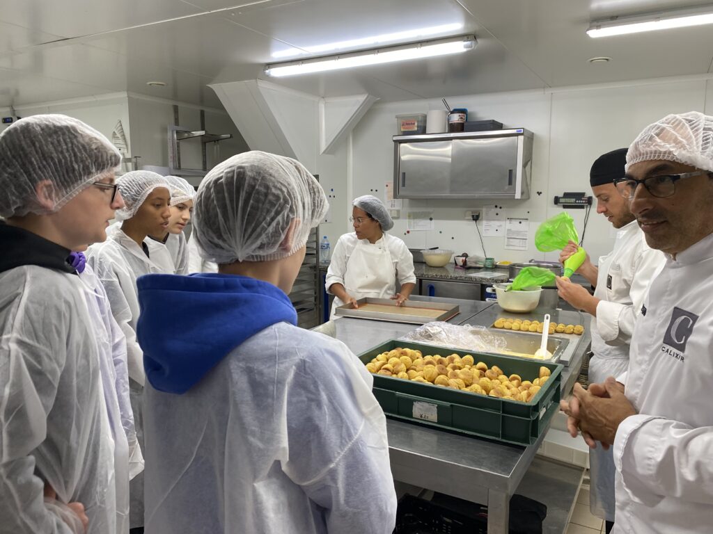 Alors que les jeunes intrigués ont demandé « comment faites-vous pour ne pas manger tout ce que vous préparez ? », un commis de cuisine leur a répondu en leur apportant un plateau de choux à la crème citron « on ne peut pas ! et une de notre mission est également de goûter et vérifier le bon goût des préparations 😊 ».