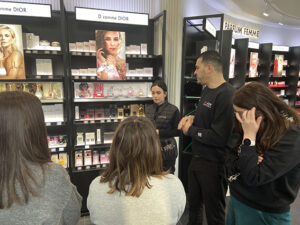 Puis, les élèves ont rencontré une conseillère de vente experte en parfumerie qui a parfumé chacune d’elle. Cette expérience leur a permis de se projeter dans cet environnement de travail agréable. Nous avons même pu écouter l’histoire de certains parfums très connus, un peu de culture générale ne fait pas de mal !
