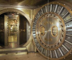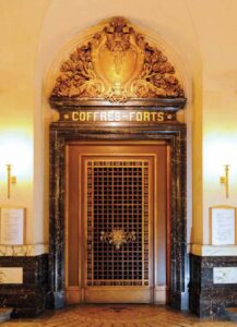 Le clou de la visite a été la découverte de la plus grande salle des coffres d’Europe, s’étendant sur 4 niveaux. Nous avons été impressionnés par la taille imposante de la porte du coffre, mesurant 2,66 mètres de diamètre et pesant 18 tonnes, fabriquée par les célèbres forges du Creusot. Farid nous a partagé une anecdote surprenante : dans les années 1970, la Société Générale était la cible de 15 hold-ups par mois, mais grâce aux mesures de sécurité renforcées, ces incidents appartiennent désormais au passé. D’ailleurs, il est interdit de prendre des photos dans une banque, c’est pourquoi l’article est illustré des photos présents dans la brochure officielle de cette dernière.