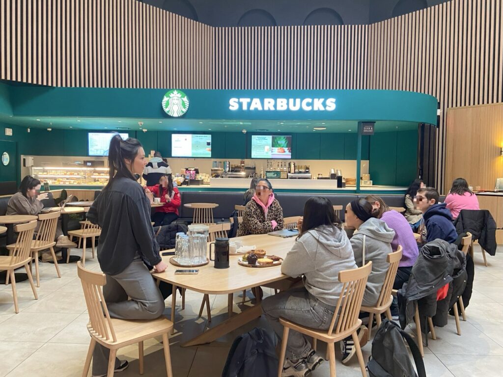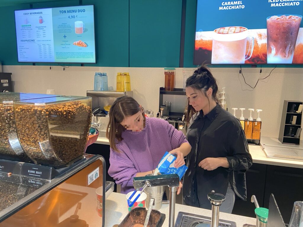 La visite a été animée par Johanne, responsable du salon Starbucks. Elle a partagé avec les élèves son parcours, passé de barista en contrat étudiant à responsable de salon, et a souligné les opportunités d’évolution professionnelle offertes par Starbucks. Aujourd’hui, elle encadre une équipe de 11 salariés.