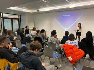 La visite s’est ensuite orientée vers l’univers magique de la joaillerie, où Philippe et Céline, experts chevronnés, ont dévoilé les secrets des métiers de joaillier/concepteur 3D et de designer. Les visiteurs ont ainsi eu l’occasion de toucher du doigt l’exigence et la créativité qui sous-tendent chaque pièce d’exception créée par Chaumet. Ils ont répondu à de nombreuses questions, des plus techniques « Quel logiciel utilisez-vous pour la conception 3D ? » aux plus concrètes : « Ça prend combien de temps de faire une montre, par exemple ? ».